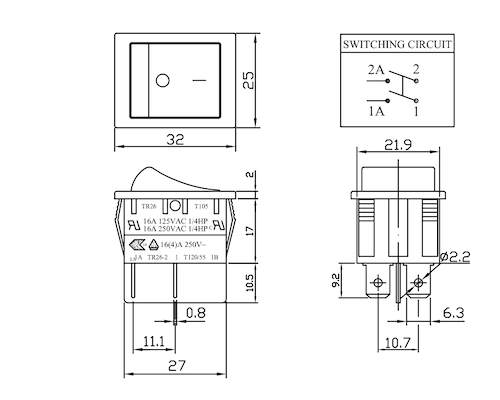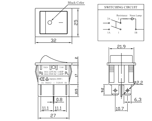 ▪︎ 16A 125VAC 1/4HP > UL cUL